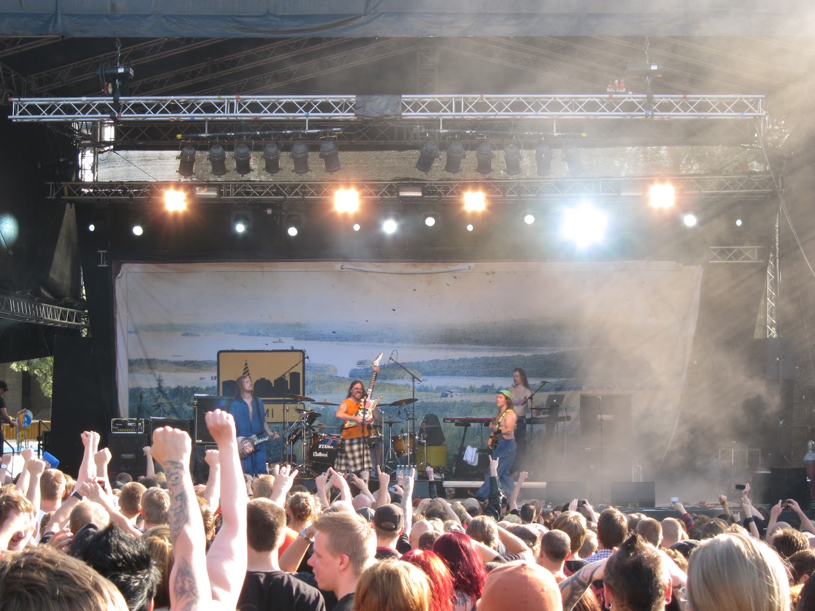 Ja sitten Tammerfesteille. Onpa ollut hauskat kaksi päivää! Otsikkoon viitaten festeilin torstain Marimekon Ahkeraliisa-mekossa, mutta olin aika ahkera ennenkin festejä. Kävin kaatosateessa reilun tunnin lenkillä koiran kanssa, sitten bodystepissä ja CXWorks-tunnilla, sitten tunnin lenkillä taas koiran kanssa ja pompin päälle festit. Sykemittari kertoi minun kuluttaneen 1500 kcal liikunnalla torstaiaamupäivänä, joten ahkeraliisa tosiaan.