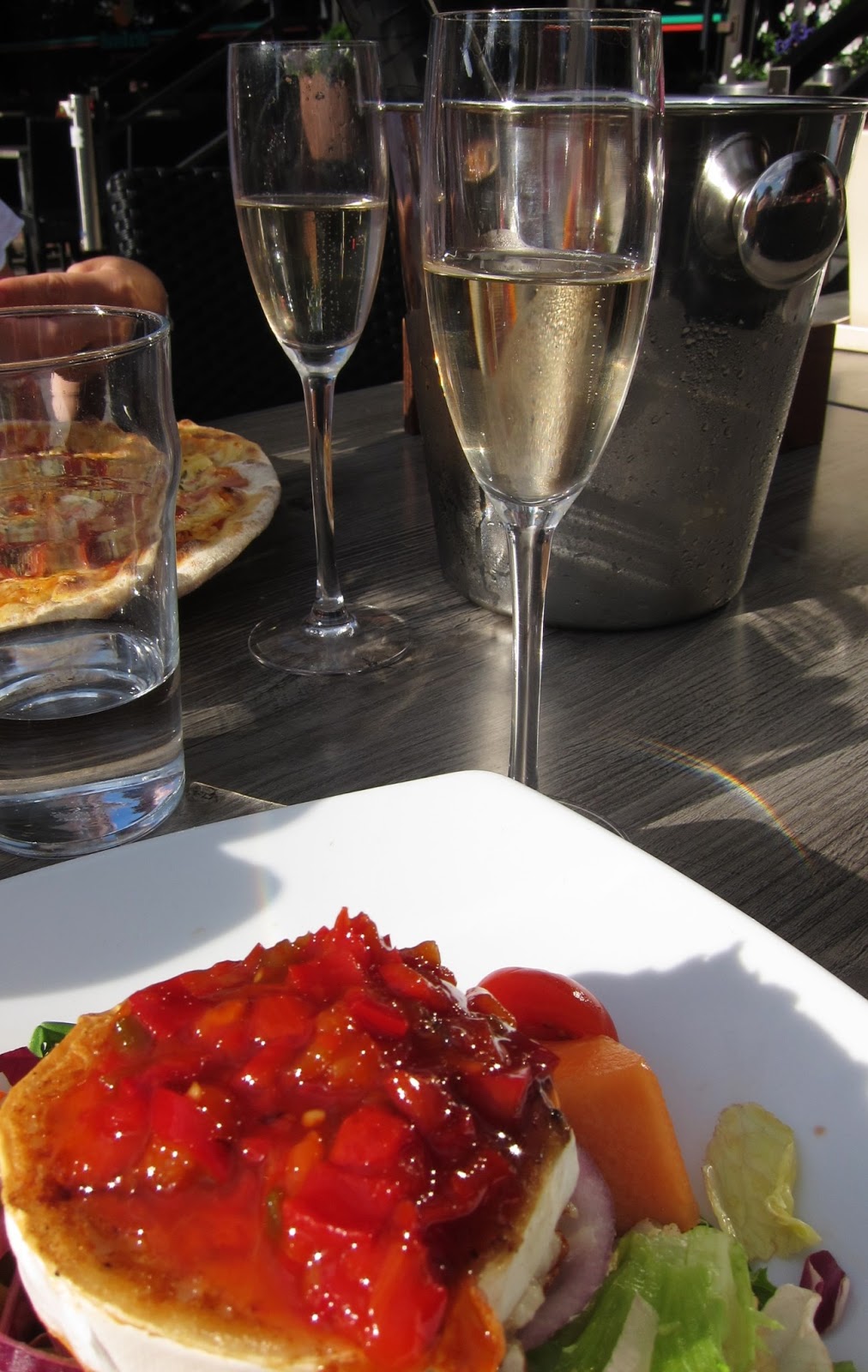 Kesäinen mekko ja kesäinen keli. Kaksi äitiä terassilla höpöttämässä ja vaihtamassa kuulumisia. Hyvää ruokaa ja kuplajuomaa. Olipa ihanaa käydä vähän ihmisten ilmoilla ja yhtä ihanaa tulla taas kotiin. :)