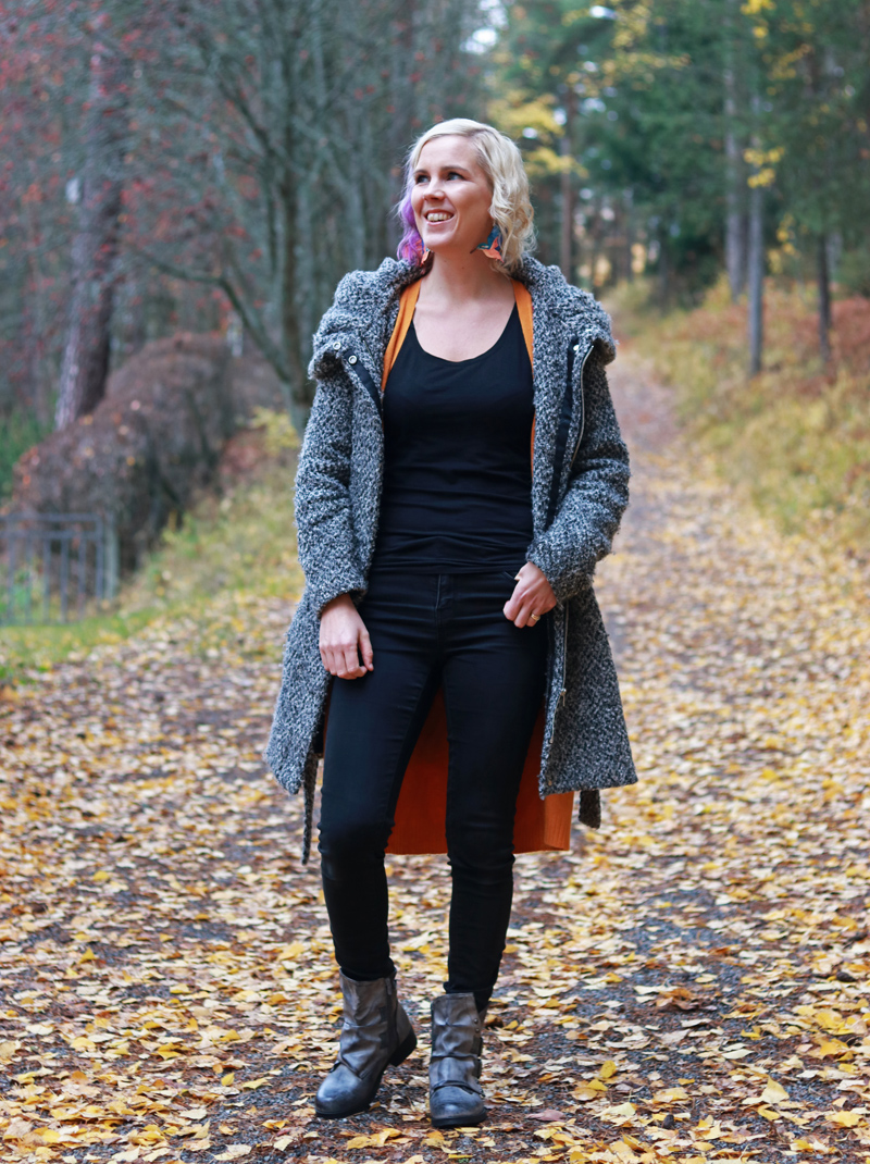 neule VILA/ farkut LIDL by Heidi Klum/ korvikset PINJAPUU