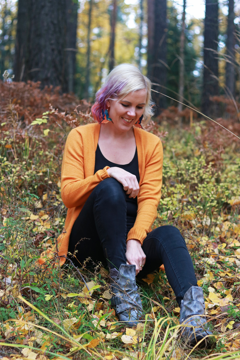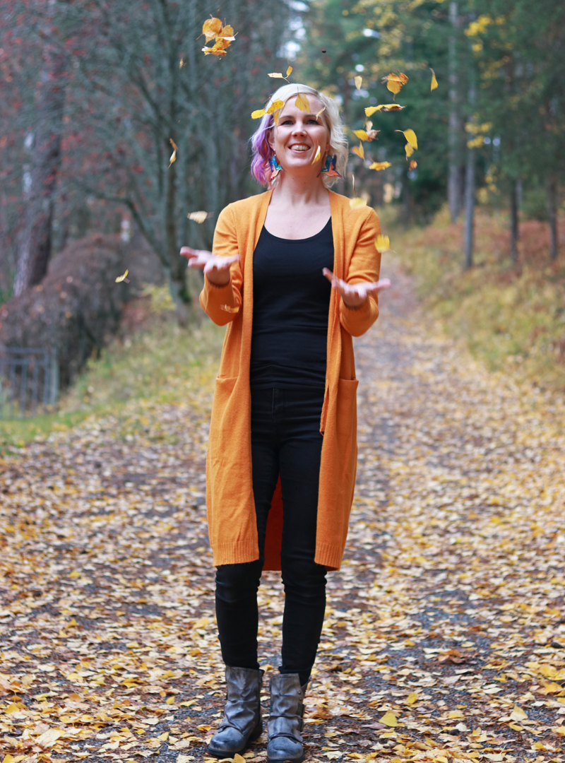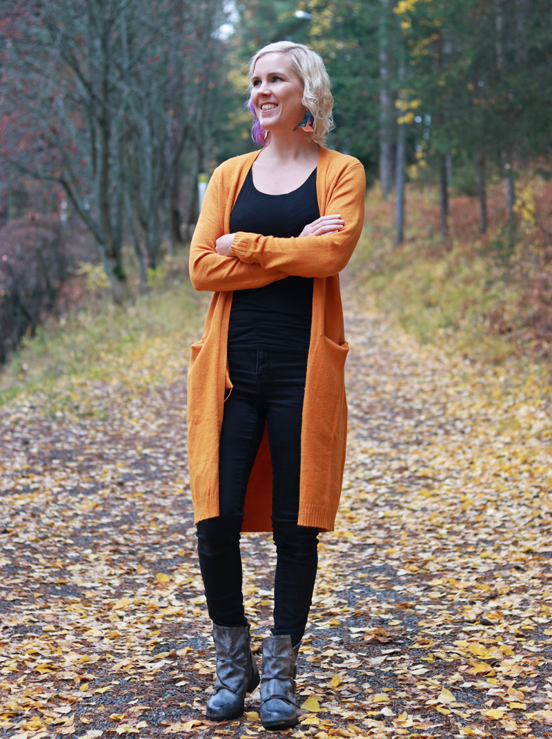 neule VILA/ farkut LIDL by Heidi Klum/ korvikset PINJAPUU