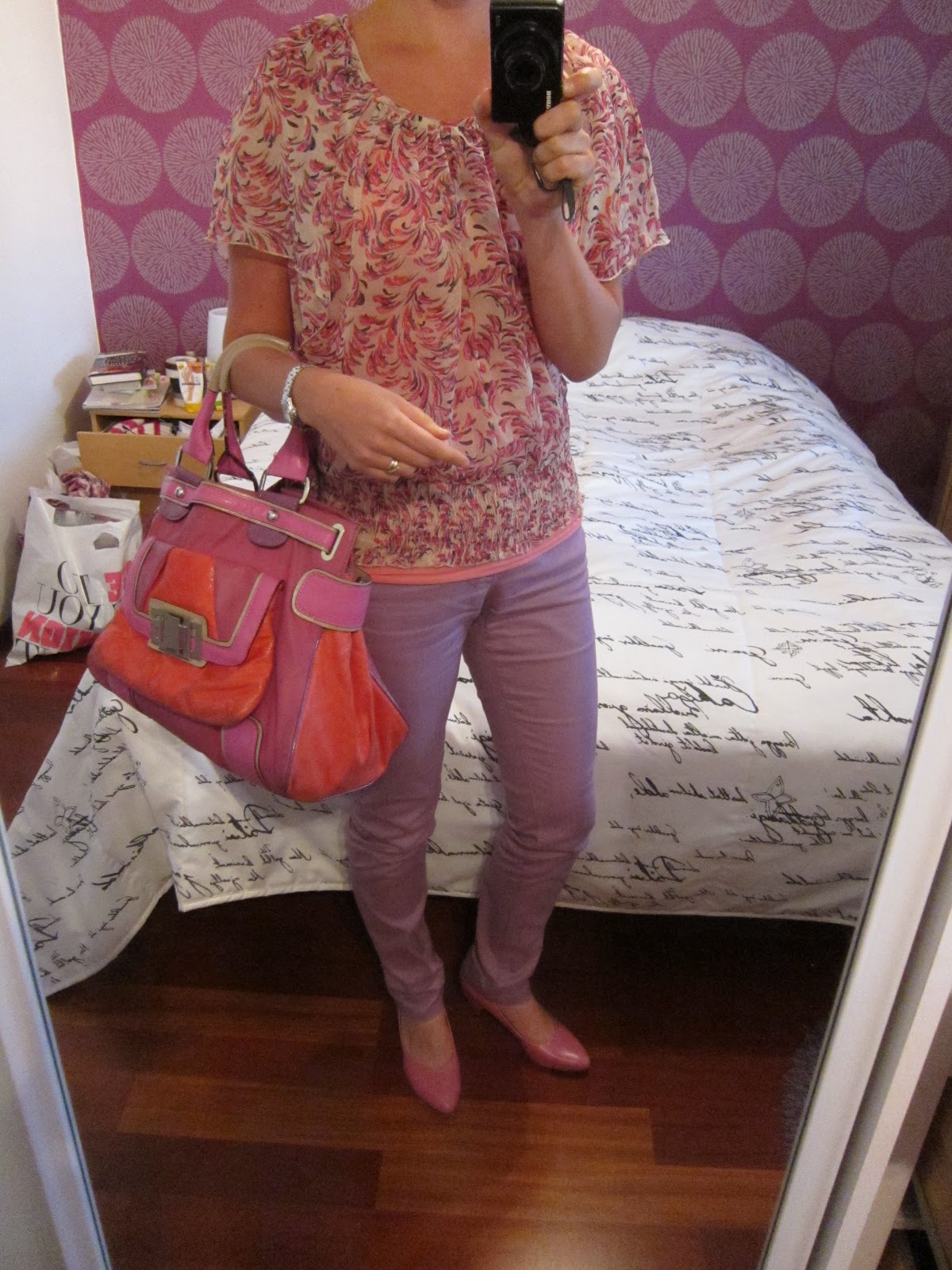 Tänään lähdin matkaan katsomatta peiliin ja tajusin vasta jossain vaiheessa, että tulikohan nyt vedettyä liian sävy sävyyn. Ehkä meni vähän överiksi, mutta nämä Elloksen lilat farkut olivat kyllä rakkautta ensi silmäyksellä. Niin kivat, samat pökät kuin aiemmin blogissa nähdyt keltaiset housut.