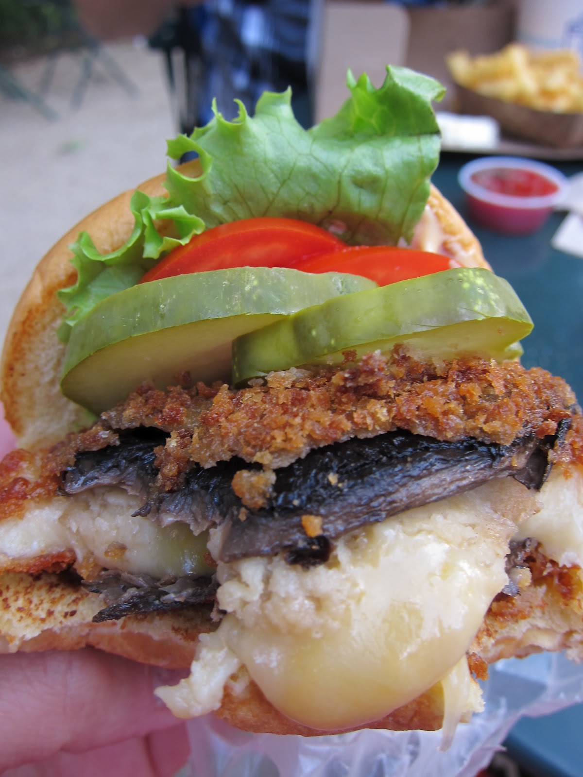 Seuraavan vinkin suosittelen painamaan korvan taakse: maailman paras kasvisburgeri löytyi matkalla. Ketju nimeltään Shace Shack on alunperin avannut kojunsa Madison Parkiin ja siellä se alkuperäinen koju on vieläkin. Nykyään kyseessä on kuitenkin ketju ja ravintoloita löytyy muualtakin, mutta suosittelen menemään Madison Parkiin. Ihana tunnelma ja burgerinsa sai syödä pihalla, kun vain jaksoi jonottaa tunnin ajan. Vinkkinä, että juomia voi ostaa jonoon. ;)